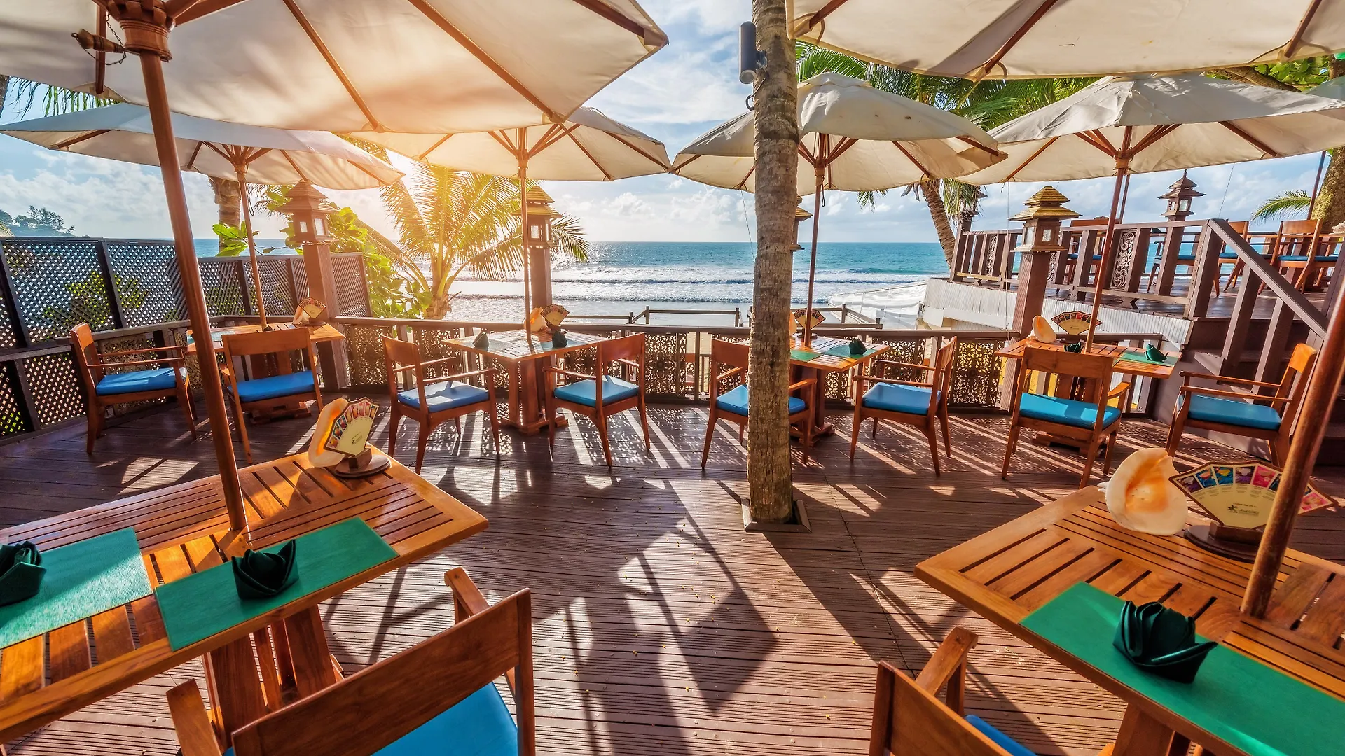 You can go to Tom Yum restaurant for lunch or eat your dinner at Mareblu Italiano restaurant. The restaurant serves Thai cuisine. There is also a pool bar.